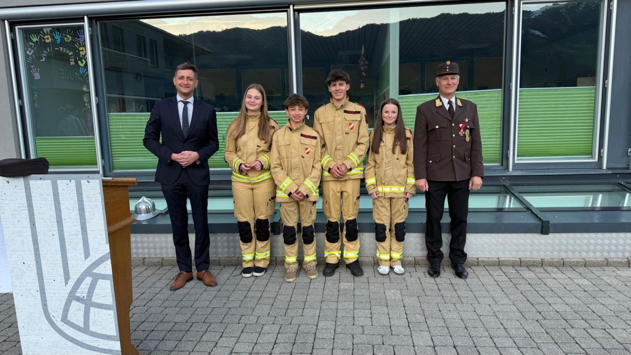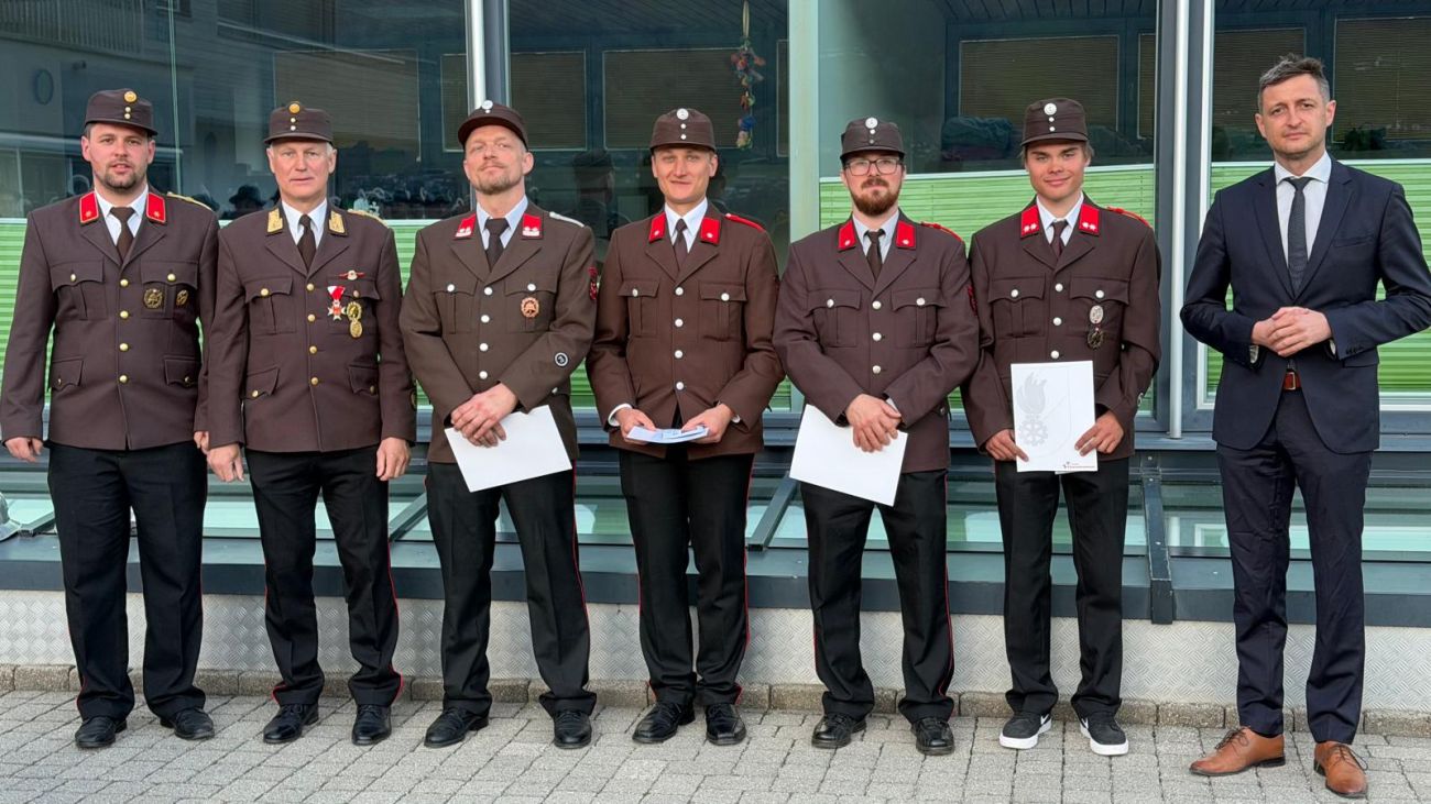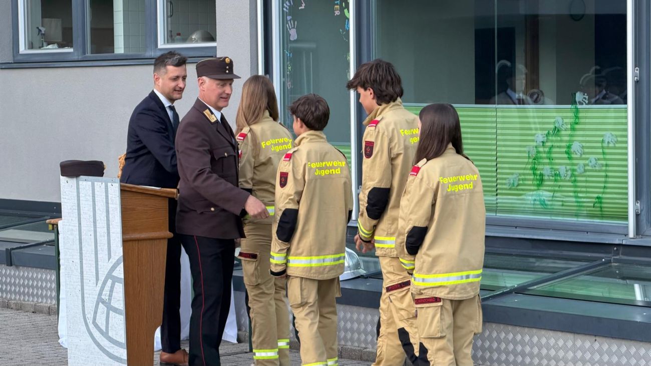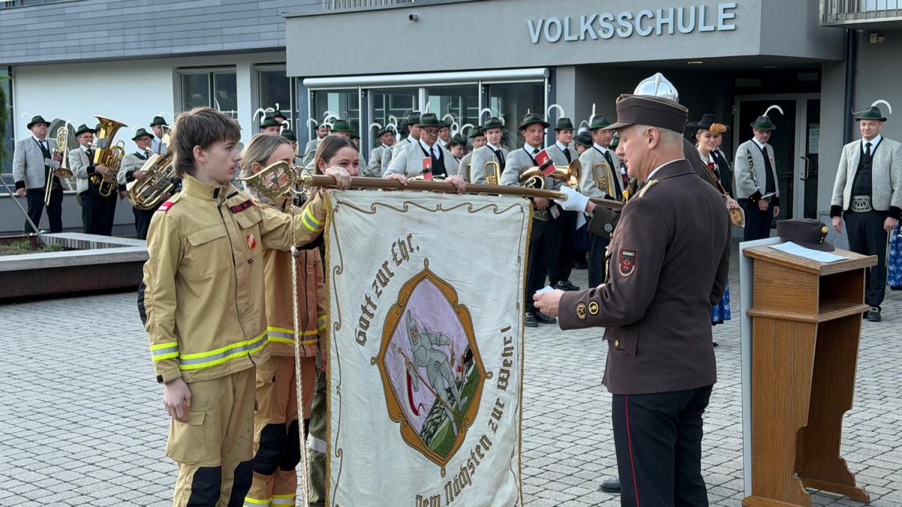 Im Anschluss daran fand am Vorplatz der Volksschule Hart der Festakt statt. Dabei wurden drei neue Kameradinnen und Kameraden angelobt und somit offiziell in den Dienst der Feuerwehr aufgenommen. Zudem durften wir mehrere Ehrungen für verdiente Mitglieder durchführen.