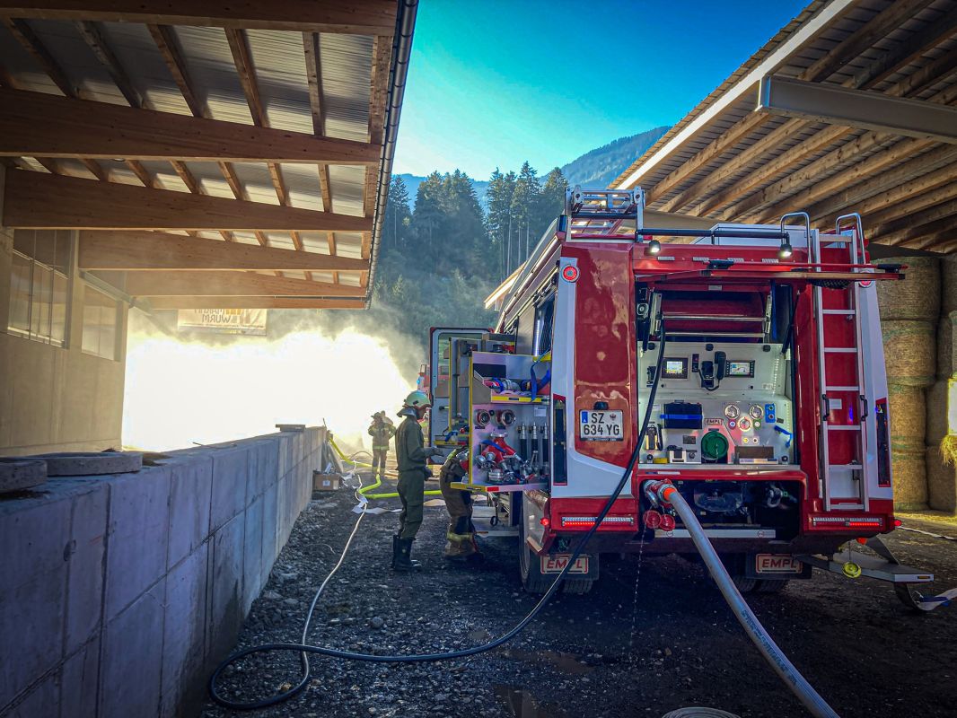 Am 07.10.2022 wurde die Feuerwehr Hart zu mehreren brennenden Strohballen in Fügen nachalarmiert. Bei einem Bauernhof in Fügen waren diese zuvor in unmittelbarer Nähe eines Stalles in Brand geraten, weswegen von der Feuerwehr Fügen eine entsprechende Nachalarmierung veranlasst wurde.