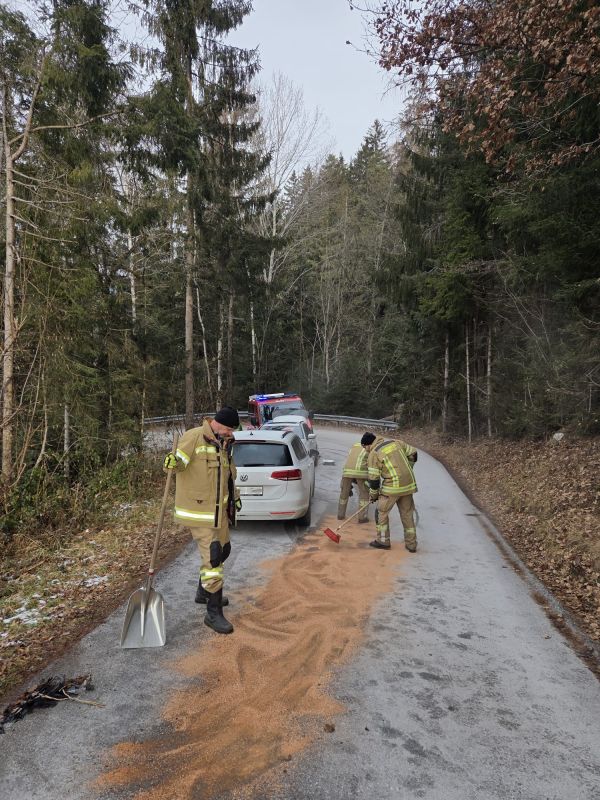 Nach der Anforderung durch die Exekutive rückten wir mit MTF und TLF-A zur Einsatzstelle aus. Die ausgelaufenen Flüssigkeiten wurden gebunden und die Fahrbahn von Fahrzeugteilen gereinigt.
